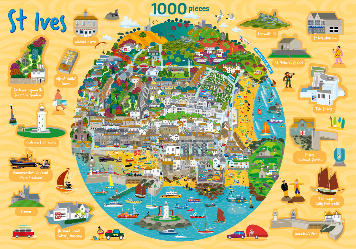 Just added to our jigsaw puzzle range, the fabulous St Ives jigsaw puzzle. As with the Plymouth 1000, this highlights the many beautiful landmarks in St Ives, including the Tate, Barbara Hepworth Museum, Alfred Wallis's grave and much more! Available to order very soon. Watch this space.