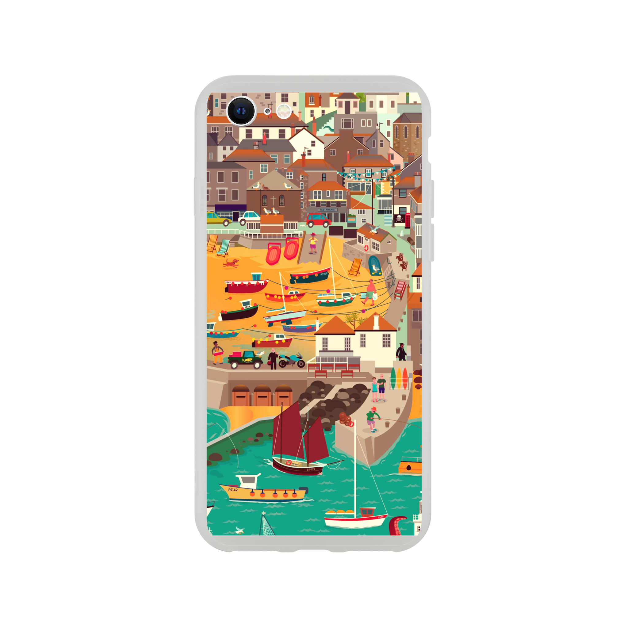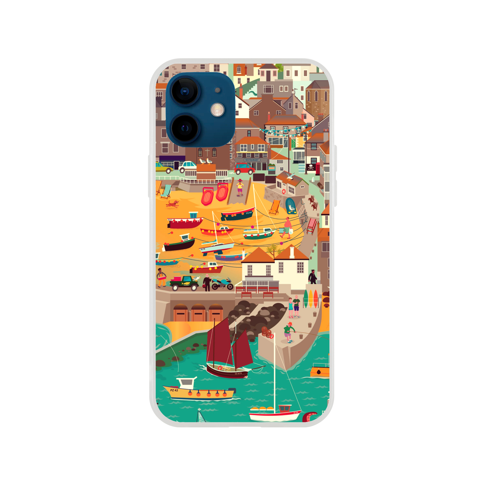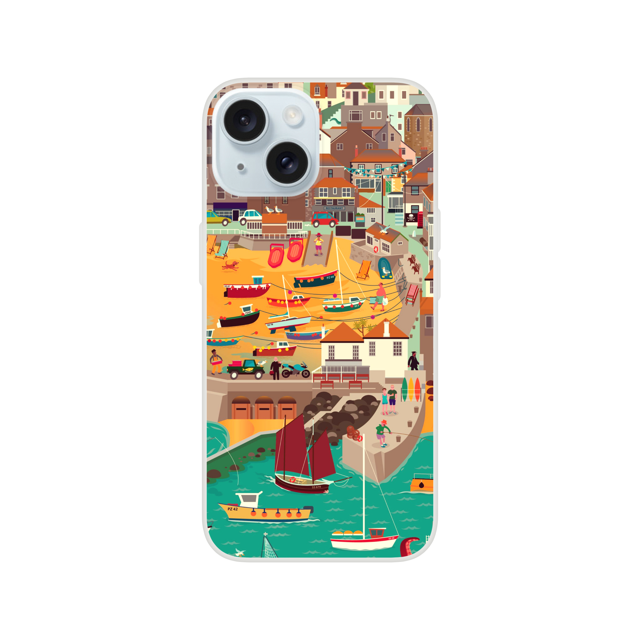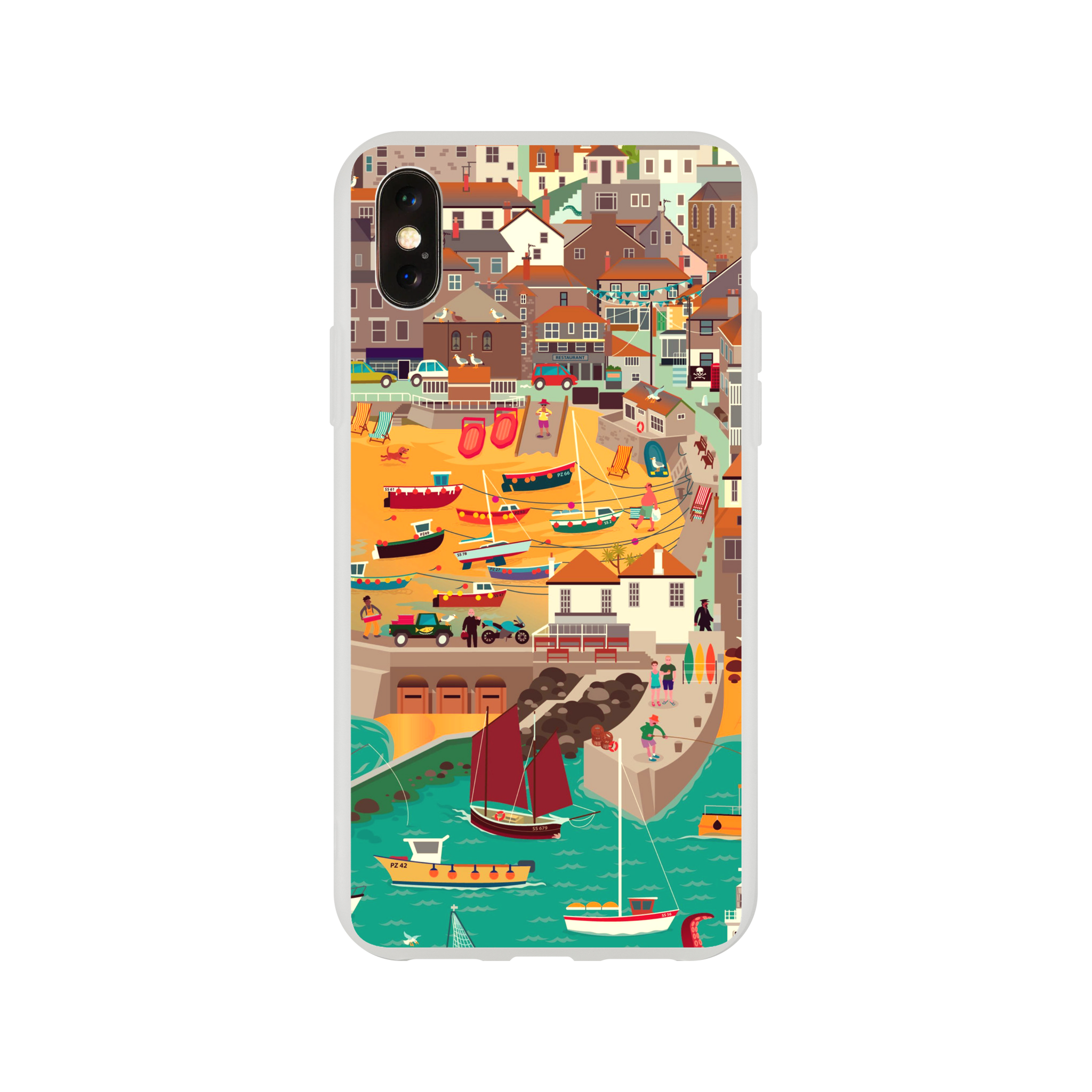 The St Ives Harbour Flexi case shows a detail from the Planet St Ives artwork. This gorgeous illustration shows the Harbour beach with boats and holidaymakers and the beautiful St Ives buildings.